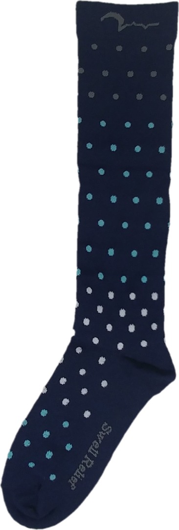 Swell Relief Brand Soft Wear Moderate/Medium Graduated Compression 15-20 mmHg. Designed for support, and comfort. Fits women's shoe size 5-8.5 and men's shoe size 4-7.5. Single Pack of Stylish Colors: Blue Polka-Dot. Total Qty. 1 Pair
