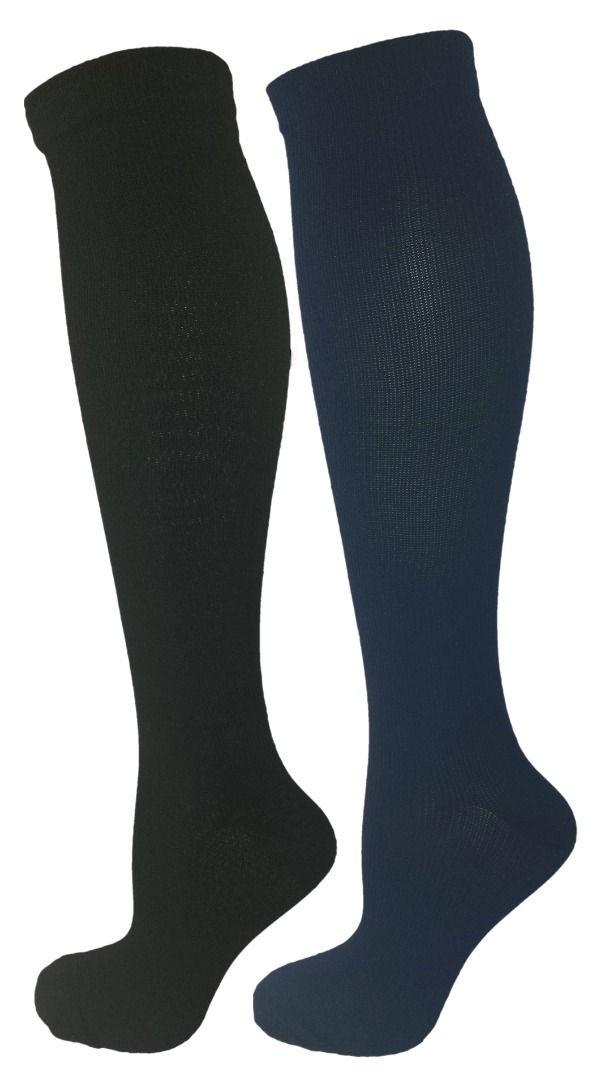 Swell Relief Moderate/Medium Graduated Compression 15-20 mmHg. Designed for support, and comfort. Fits womens shoe size 10-14 and mens shoe size 9-13. Color: All Navy Blue. Total Qty. 2 Pair