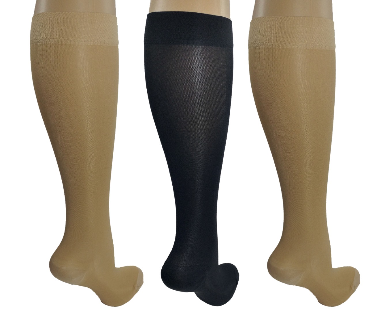 Fashionable Sheer Knee-High hose for business or casual wear. Anatomic Design with toe & heel pockets. Non-Restrictive Top Band with Stay-Up Performance. Available Colors: Nude, Black, Navy Blue & White. Quality Packaging Suitable for Gifts, resealable and reusable.