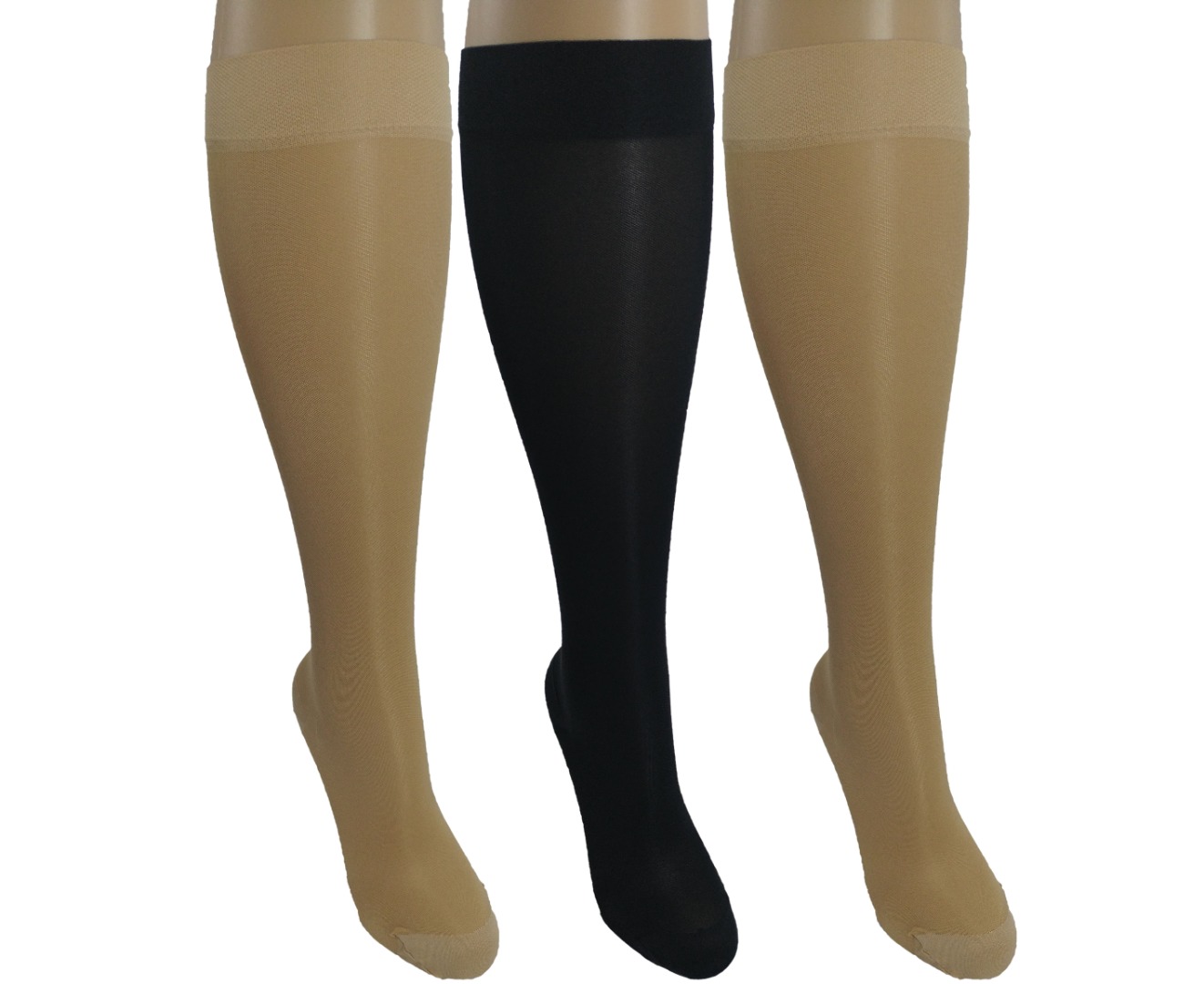 Fashionable Sheer Knee-High hose for business or casual wear. Anatomic Design with toe & heel pockets. Non-Restrictive Top Band with Stay-Up Performance. Available Colors: Nude, Black, Navy Blue & White. Quality Packaging Suitable for Gifts, resealable and reusable.