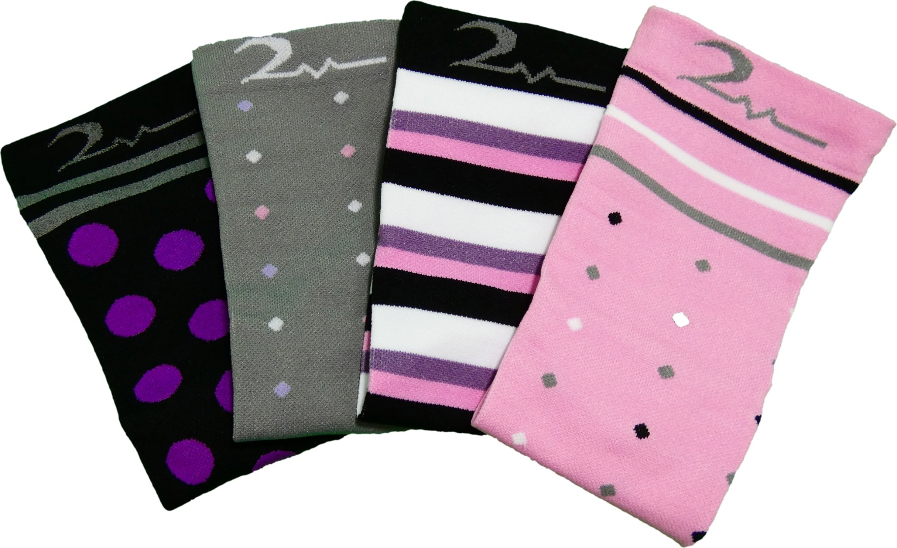 Mens and Womens Comfort Blend. Fashionable & Fun Colorful Knee-High Stockings for business, sports or casual wear. Anatomic Design with toe & heel pockets. Non-Restrictive Top Band with Stay-Up Performance. Assorted Colors and Styles Available. This 4 Pack: Black & Purple Polka Dot - Pink Polka Dots & Stripes - White, Pink, Black Stripes - Grey Polka Dot.