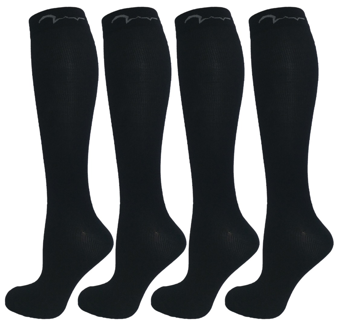 Swell Relief Soft Wear 4 Pack Graduated Compression Socks for boys and girls. Enhanced performance design for support and comfort. Fits children ages 5-9 years old, Kid's shoe sizes 4-10. Colors All Black. Qty. 4 Pair.