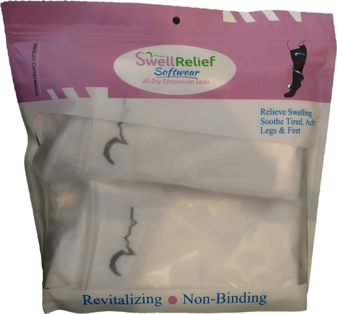 Swell Relief Soft Wear 4 Pack Graduated Compression Socks for boys and girls. Enhanced performance design for support and comfort. Fits children ages 3-6 years old. Colors All White. Qty. 4 Pair.