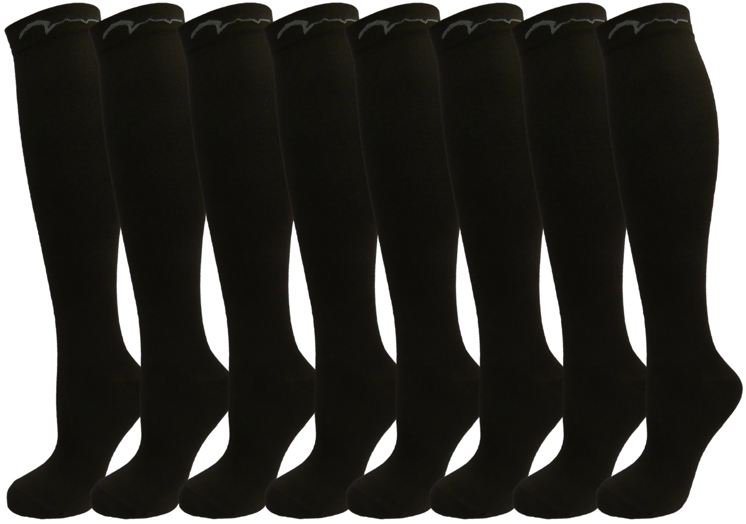 Compression socks help your body pump blood back to your heart as it moves through your circulatory system. They enhance circulation, revitalize tired and achy legs, relieve swollen ankles, and provide plantar and arch support. There is enough compression to adhere to the shape of the leg without binding or creating a tourniquet effect on circulation.