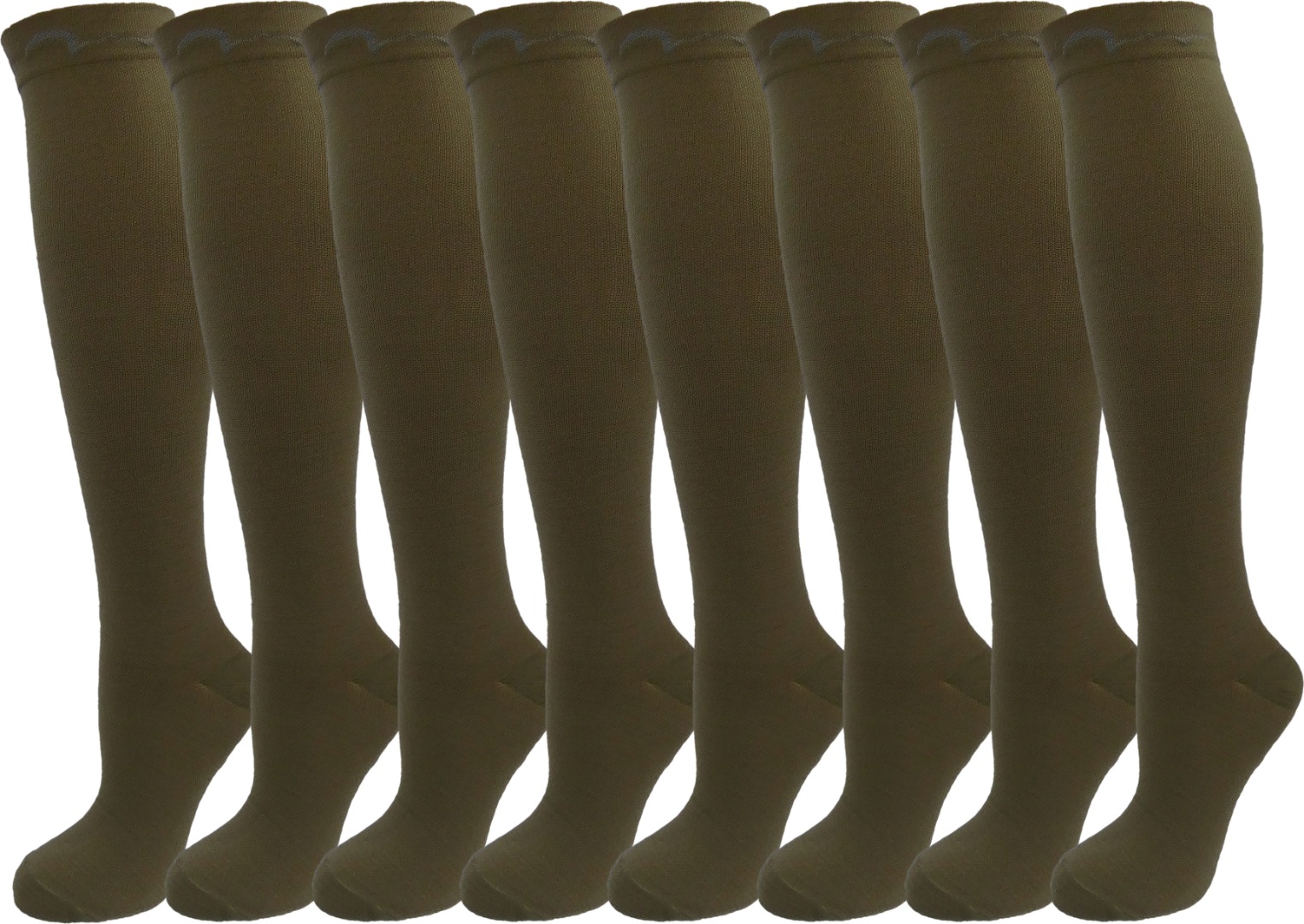 Swell Relief Soft Wear Moderate/Medium Graduated Compression 15-20 mmHg. Designed for support, and comfort. Fits women's shoe size 8.5-11.5 and men's shoe size 7.5-10.5. Qty. 8 Pair. Color: Khaki
