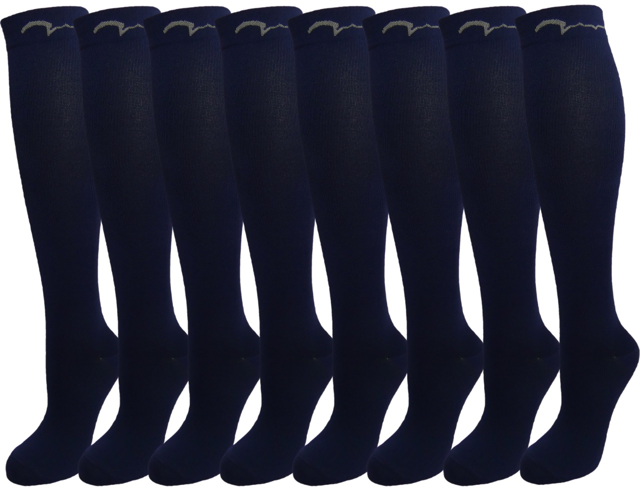 Fashionable & Fun Design Knee-High Stockings for Business or Casual Wear. Anatomic Design with Toe & Heel Pockets. Non-Restrictive Top Band with Stay-Up Performance. Assorted Colors Available: Navy Blue, Denim Blue, Light Blue, Black, White, Brown, Beige, Khaki & Grey. Note: compression increases with calf width, check to see if one size up may be a better fit.