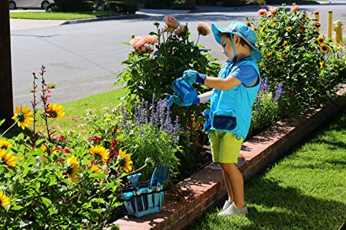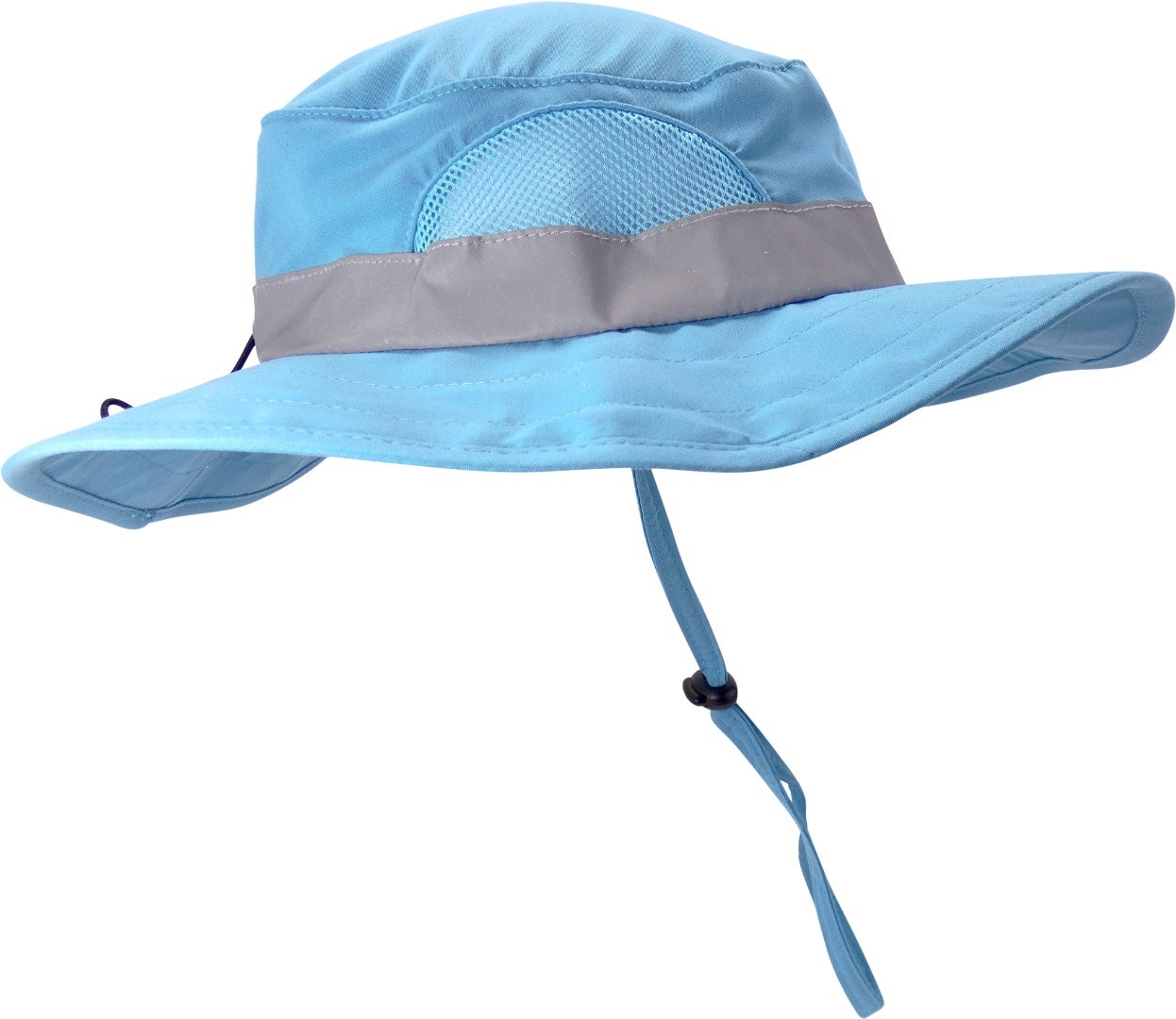 Kids Safari Floppy Sun Bucket Lightweight Hat for Backyard Outdoor Adventure for Boys & Girls. Sure Fit Adjustable Head Band Expands to fit children ages 8-11 (sizes 8-12), Wide Brim for All Weather Sun Protection, Brightly Colored Hat Band for High Visibility, Adjustable Chin Strap with Quick Release Tab, Roomy Crown, and Large Mesh Ventilation Panels. Blue Medium/Large
