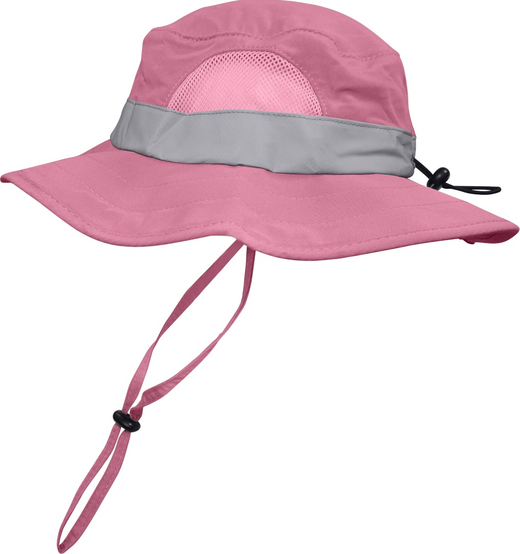 Sun UV Protection Floppy Hat with Wide 2 5/8" Brim, 7 3/4" Chin Strap with sliding quick-release tab for easy on, easy off & Reflective Hat Band for High Visibility. Perfect for Bird Watching, Bug Collecting, Photo Safaris, Fishing, Hiking & Adventures of all kinds. Adjustable Inner Head Band Fits Children Ages 4-7. Roomy Crown Extends 5" High. Double Stitched Seams, Inside Sweat Band & Large Mesh Ventilation Panels. Size: Small/Medium. Pink