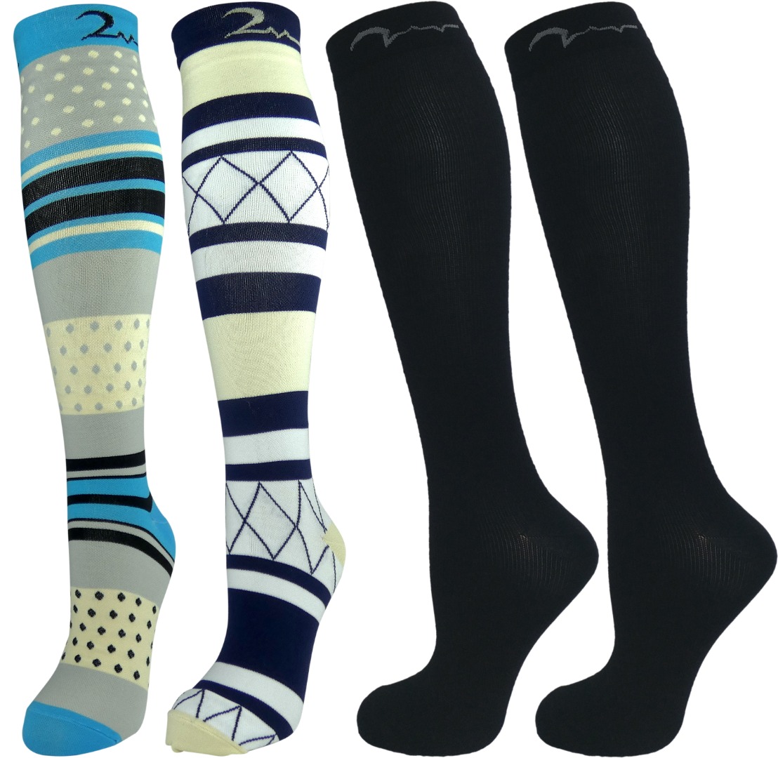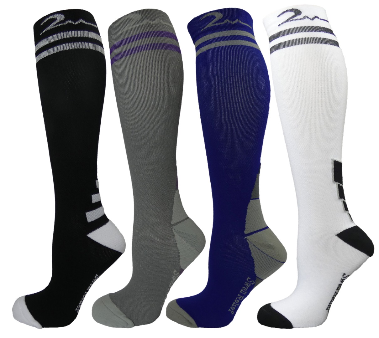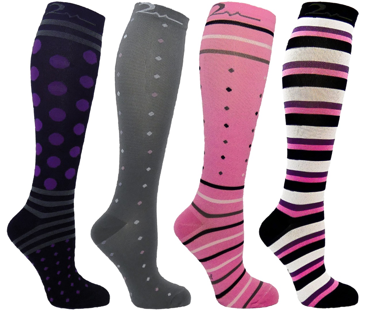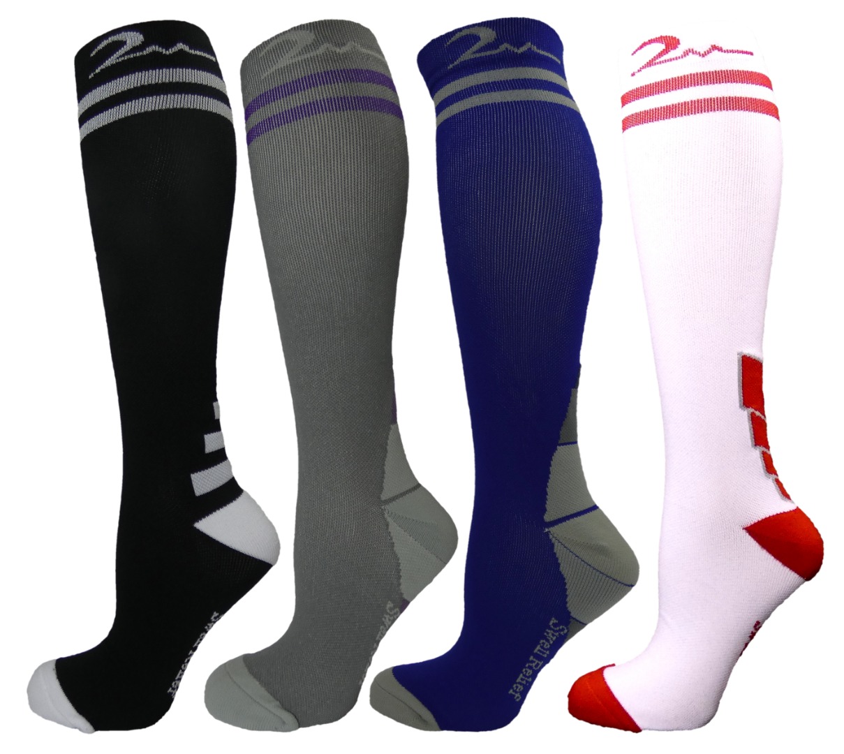Compression socks help your body pump blood back to your heart as it moves through your circulatory system. They enhance circulation, revitalize tired and achy legs, relieve swollen ankles, and provide plantar and arch support. There is enough compression to adhere to the shape of the leg without binding or creating a tourniquet effect on circulation.