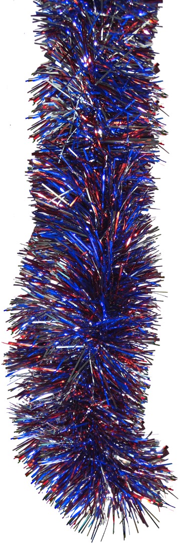 Patriotic, Holiday Tinsel Garland. 25 Ft. Super Ultra Lush, Extra Thick Multi-Layer Foil Tinsel: 4th of July, National Holiday, Birthday, Celebration, Party, Special Event. Colors: Red, Silver & Blue