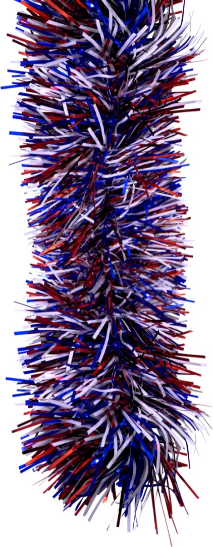 This shimmering fine foil tinsel decoration adds color and elegance to your home, office, public or private party decor Patriotic Colors for 4th of July, BBQ, Summer, National Holidays, Thanksgiving, New Years Eve Celebration, Wedding, Birthday & Seasonal Parties. Available in a variety of rich assorted colors: Gold, Silver, Green, Black, Red, White, and Blue.
